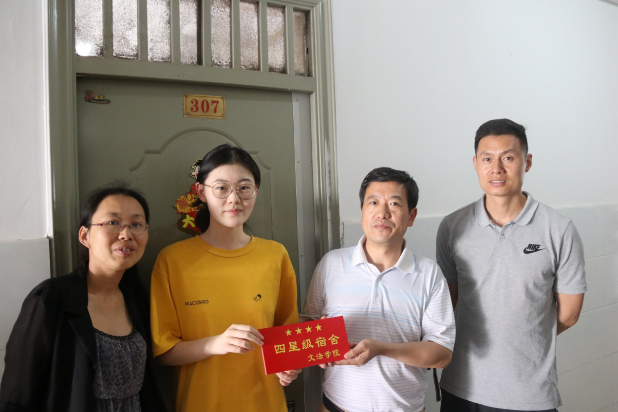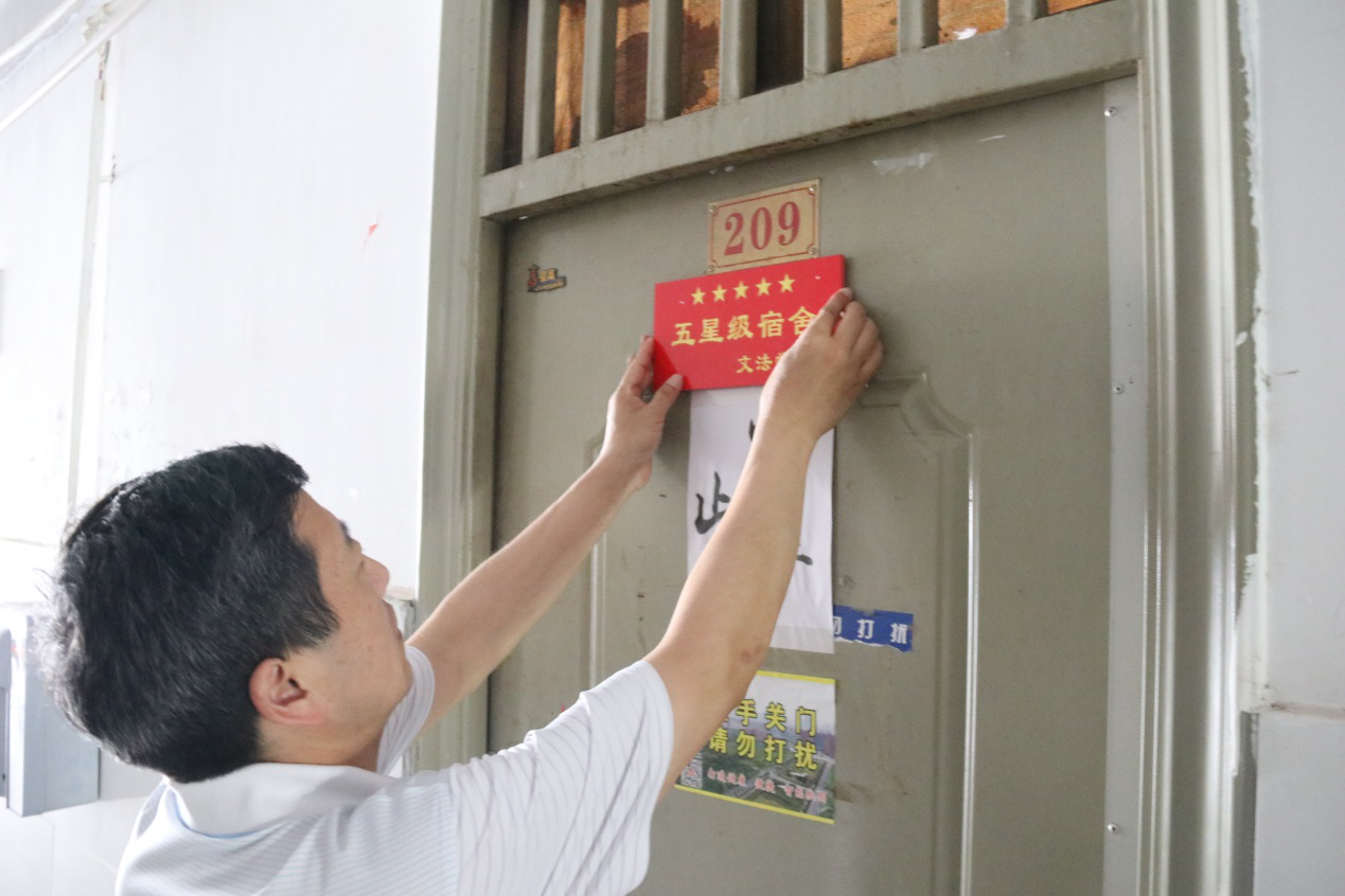 6月6日上午,EMC易倍体育党委副书记李达,学生办主任、2017级法学系辅导员张云辉、2017级中文系辅导员张旭来到学生宿舍,为优秀宿舍挂牌。同时,书记李达也对星级宿舍的学子们提出更高的要求,希望他们再接再厉不松懈,积极进取做榜样,保持住这份来之不易的荣誉,做好优秀寝室的领头羊,带领其他宿舍共同进步,让优秀成为一种习惯,让安全和整洁成为一种常态。
