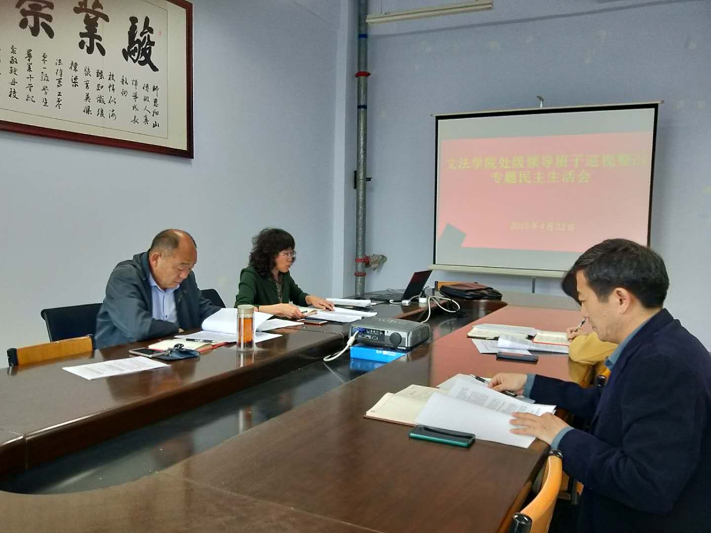 4月22日,院党委在B407会议室召开院领导班子民主生活会。路玲书记代表班子首先作对照检查,班子成员也依次发言,大家本着实事求是、坦诚相见、惩前毖后、治病救人的原则,着眼于为单位更好的发展,为个人更快的成长,胸怀全局和长远,坦诚相见,逐一开展了批评与自我批评。最后,党委书记路玲代表班子作总结发言。她认为这次民主生活会的召开,紧扣主题,准备充分,班子查摆问题客观全面,剖析原因深刻认真,班子成员交流了思想,提高了认识,明确了努力方向,民主生活会取得了预期成效。
