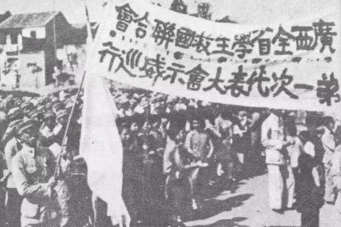 12月16日,西安学生数于人奔赴陕西省政府请愿原定 本日成立的“冀察政务委员会”武昌学生游行队伍奔向省政府 延期成立。