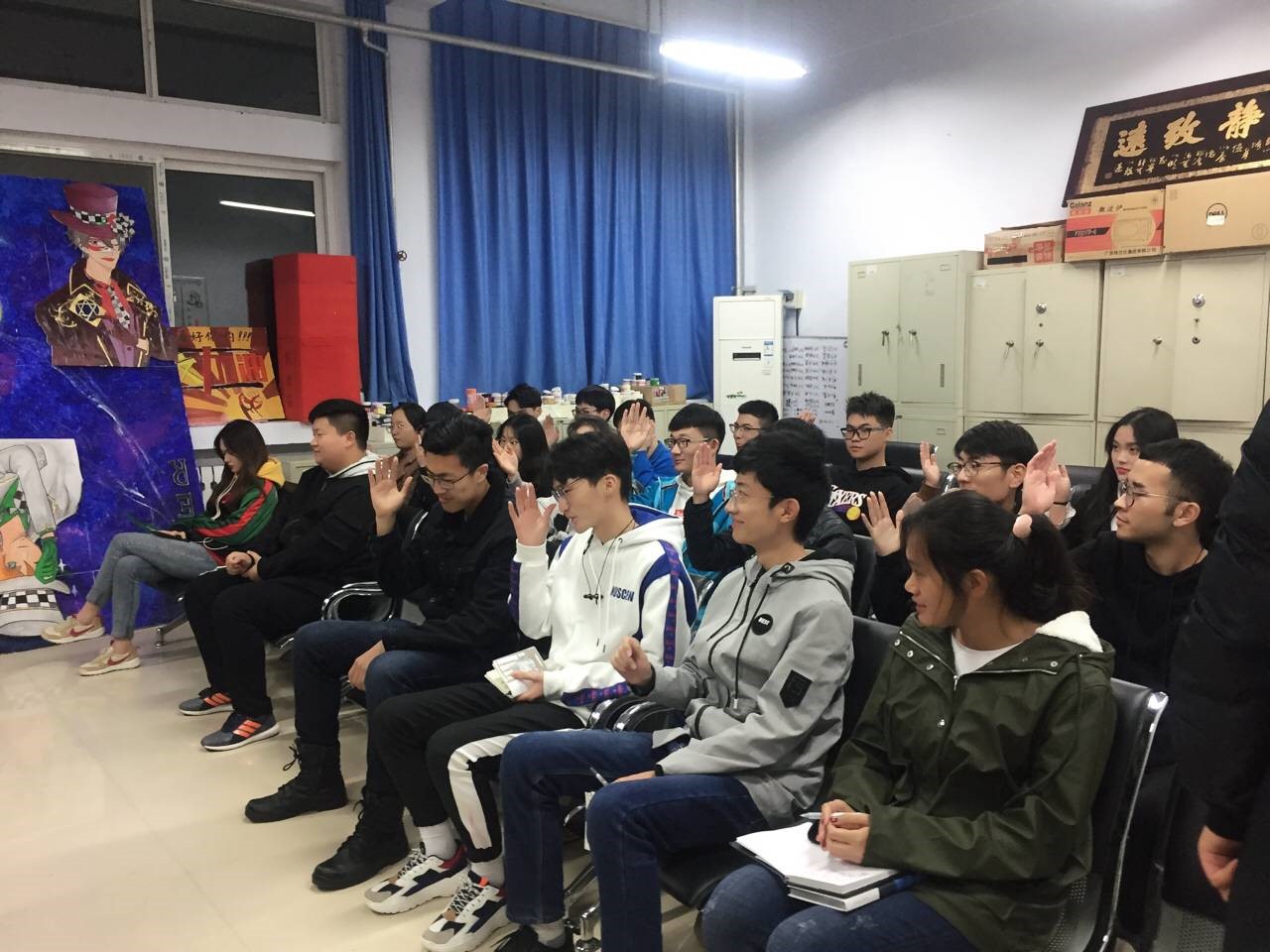 紧接着换届大会正式开始,经全体会员举手表决,最终选出朱宁超任学习会会长、王俊泓任副会长、孟志强李海铭任理事。