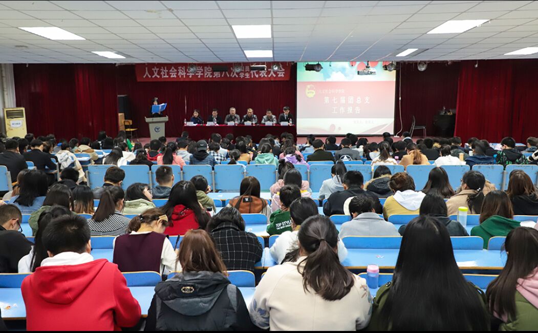 11月8日晚19:30,人文社会科学学院在01A203召开第八次团员学生代表大会。出席本次会议的领导和嘉宾有人文社会科学学院党总支书记卫铁林、人文社会科学学院院长姜运仓、人文社会科学学院党总支副书记李达、校团委创新实践部部长徐亚辉、校学生会副主席蒋浩然、2016级政治辅导员薛志娟和2018级辅导员何伟。团员代表、学生代表及学生会全体成员共计200余人参加此次会议。会议由学院团总支书记刘爽主持。