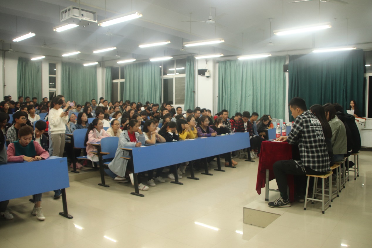 10月16日晚,人文社会科学学院新生交流会在07B107教室举行。此次会议邀请了大四优秀学生代表刘东瑞、张竞文、雷国鹏、孟玮前、朱宁超作为嘉宾来交流自身经验。全体2018级新生参加了此次新生经验交流会。会议由学习部的付秀芳主持。