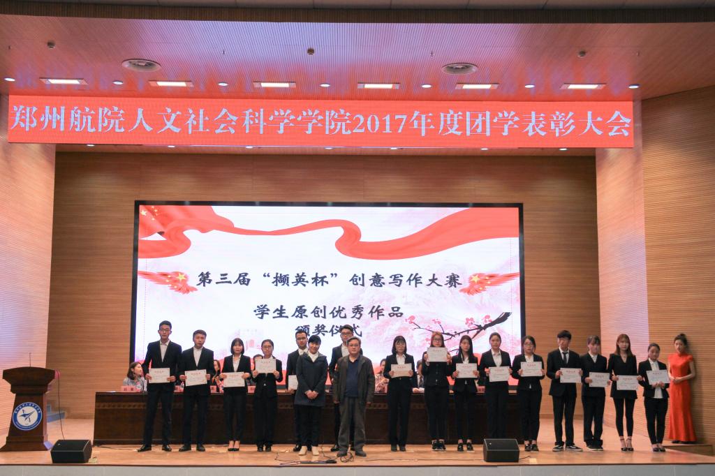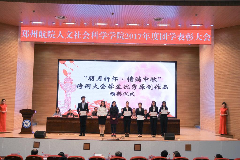 本次大会对2017年度各项团学活动中表现优秀的学生和班级分别进行表彰。会议伊始,由人文社会科学学院副院长邓晓成为本次大会致辞,他对2017年度各项团学活动所取得成绩的给予了充分肯定,向表彰大会的成功召开表示热烈祝贺。刘淑霞老师对第三届撷英杯和中秋诗会大会学生原创作品进行了精彩点评,阐明了同学们在诗词创作方面的进步与不足。方飞同学代表撷英杯和中秋诗会获奖学生发言。文学教研室主任荆云波、语言教研室主任原鹏分别宣读了第三届撷英杯创意写作大赛和中秋诗词大会获奖学生名单,鲁庆中教授、沈晴教授、张艳蕊副教授分别为获得特等奖和一等奖的学生颁奖。在接下来的我院首届公共管理案例分析大赛的获奖作品和团队的表彰中,行政管理教研室主任许建兵首先宣读获奖名单,公共管理教研室主任吴琦进行了大赛点评,随后获奖学生代表赵烨发言讲话,许建兵副教授、吴琦副教授、胡晨成博士、姜士伟老师分别为获奖学生以及获得优秀组织奖的团队颁奖。