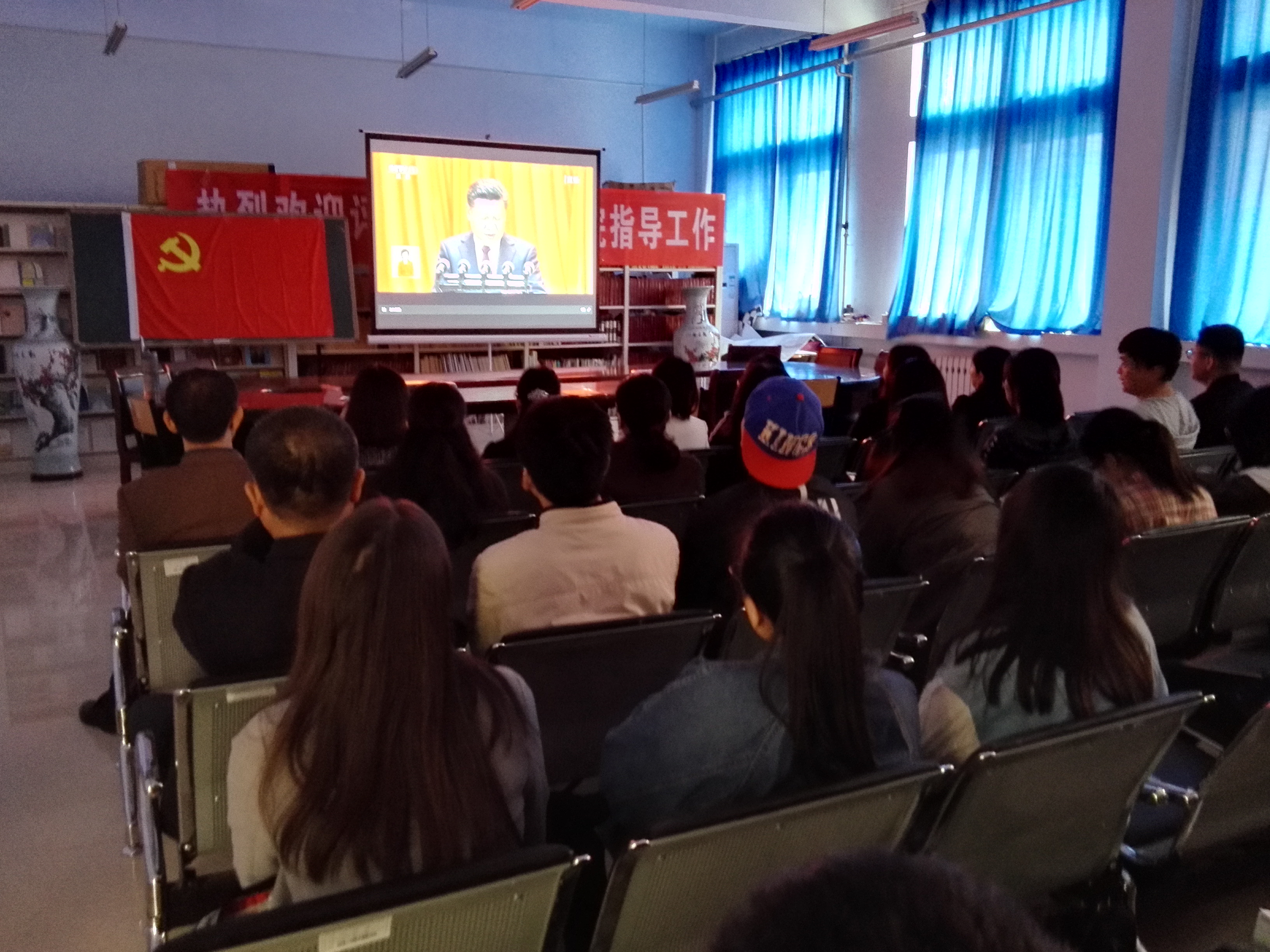 上午8点30分,全体师生党员佩戴党徽准时来到会议室。卫书记要求各位党员同志在观看过程中,认真听取报告,领悟会议精神,观看结束后多做总结,写出自己的心得体会。