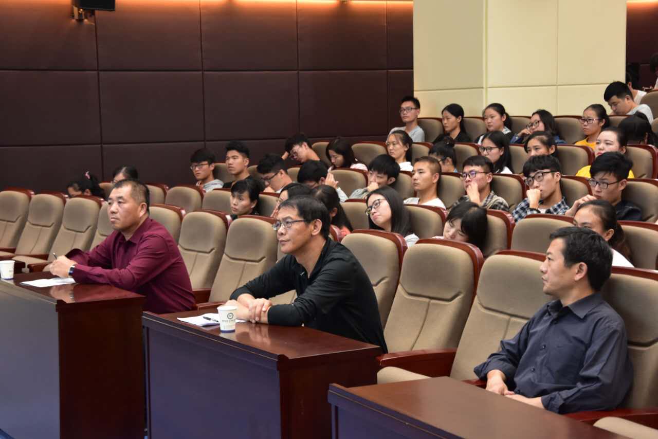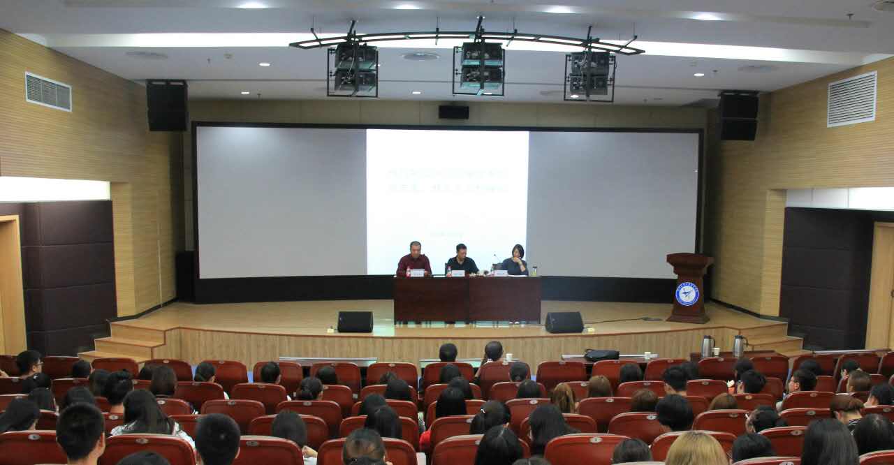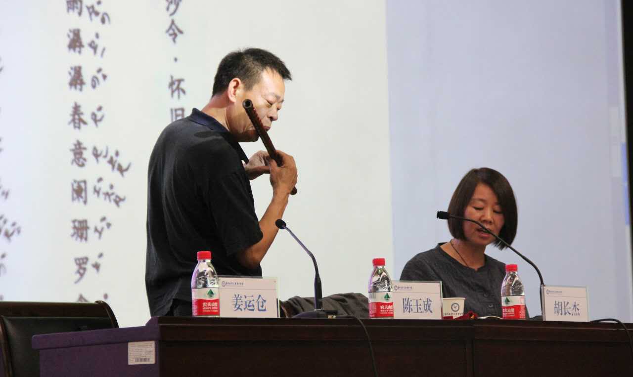 讲座伊始,院长姜运仓向全体师生隆重地介绍了中原昆曲社专家陈玉成老师与胡长杰老师,并对两位昆曲专家的到来表示诚挚的感谢。随后,中原昆曲社专家陈玉成老师、胡长杰老师以通俗易懂、幽默风趣的语言向大家介绍分析了昆曲的形成与发展。接着,两位昆曲老师多次合作,向大家演唱《忆江南》、《虞美人》、《浪淘沙》等曲目,两位老师一吹一唱之间将昆曲魅力表现得淋漓尽致,让人拍手称叹。最后,姜院长上台发言,与大家分享了参加此次讲座的心得体会,并再次表达了对两位昆曲专家老师到来的感谢。