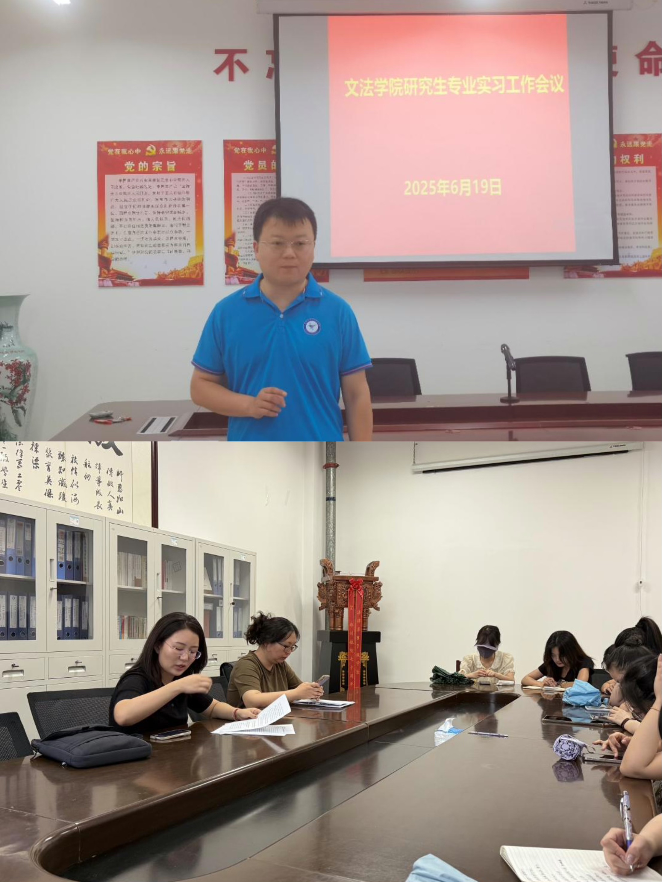 2025 年 6 月 19 日,EMC易倍体育在05B417室召开研究生培养工作会议。院长邓晓成、副院长杜勤、负责研究生实习工作的段帷帷老师和王璠老师, 2023 级法律(非法学)、2024 级法律(法学)和国际中文教育研究生参加。会议由学研办王延霞主持。